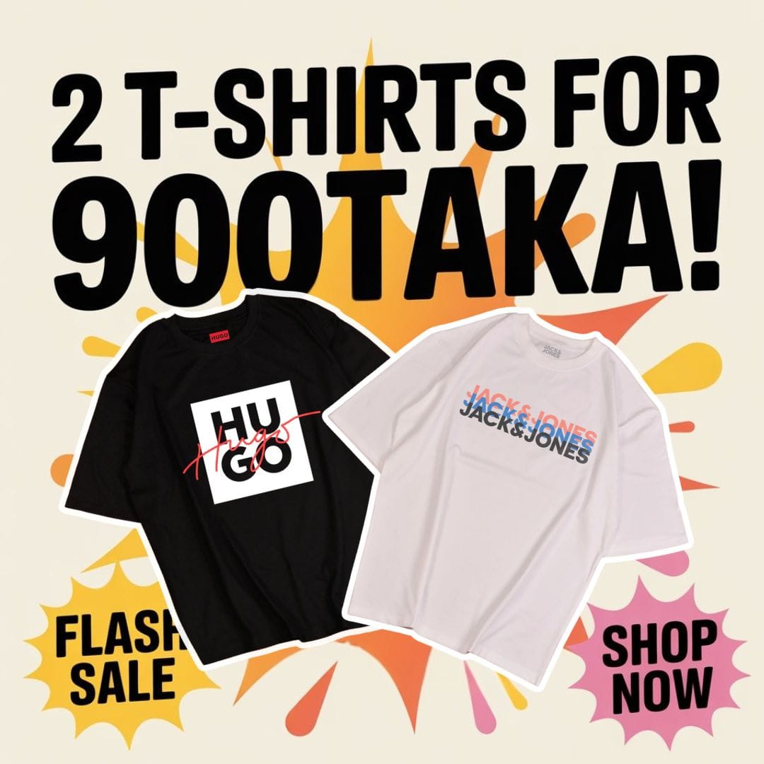 Elevate your summer style with our special T-Shirt Combo Offer! During our Flash Sale, you can select any 2 fantastic t-shirts for just 900৳. Choose from a range of cool designs and comfortable fits, including popular styles you see here. This is the perfect opportunity to refresh your look for the season. This offer is for a limited time only – add your two favorite tees to the cart and save today!